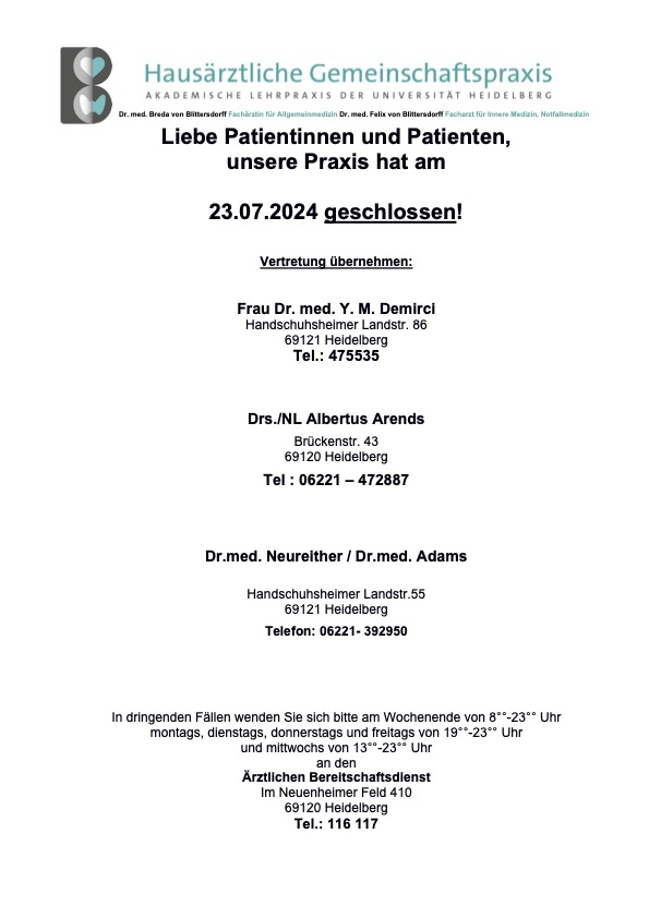 Praxis Blittersdorff – Ihr Hausarzt in Heidelberg- Handschuhsheim
